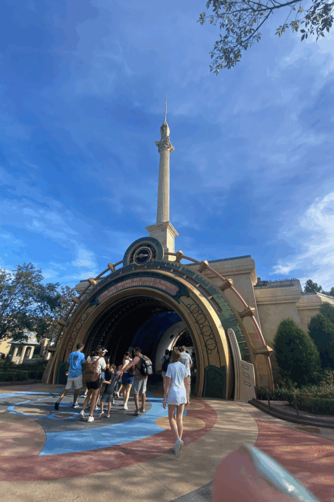 When you enter Epic Universe, the first place you’ll walk into is Celestial Park—an open, garden-like space filled with fountains, walking paths, and nighttime light shows. It’s the hub that connects you to each of the themed worlds beyond.